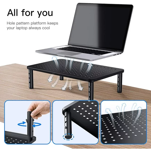 The platform of this monitor stand HNLL3 is built with mesh holes that increase airflow going toward your device. This keeps your laptop or monitor cooler and helps prevent overheating.