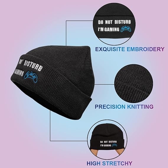 • Teenage Boys Gifts Ideas: The package contains 1 pair of socks and 1 novelty beanie hat which both coming with phrase "DO NOT DISTURB, I'M GAMING", adding much joy to the game. Wear them for a long time game with comfort and warm on head and feet.