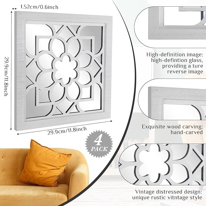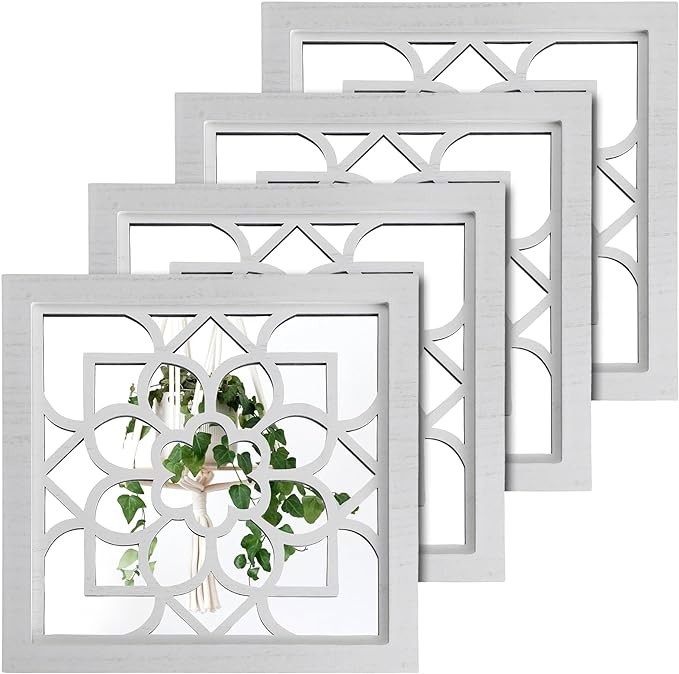 • Reliable Quality and Quantity: these accent mirrors for wall decor are mainly made of wood frame, and come in a pack of 4 mirrors, providing a deep impact on your decor; With beautifully carved, these mirrors offer durability and longevity, ideal for decorating your place