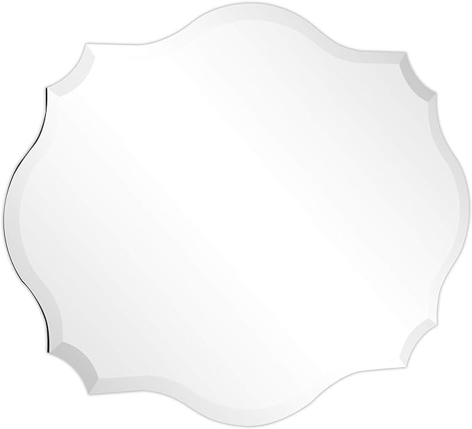 Empire Art Direct Frameless Prism Modern Wall Mirror 1"-Beveled Edge Ready to Hang for Bathroom, Vanity, Bedroom, 24" x 32", Oblong Scalloped
