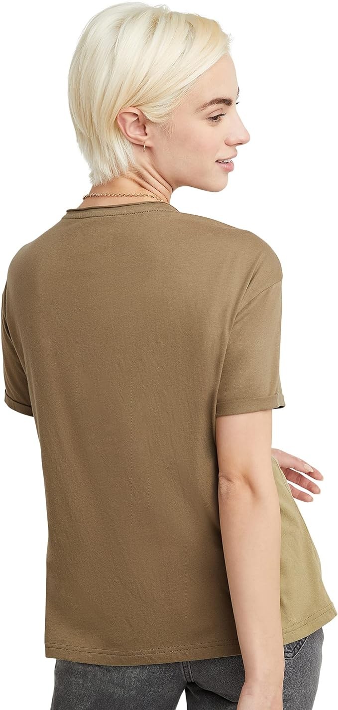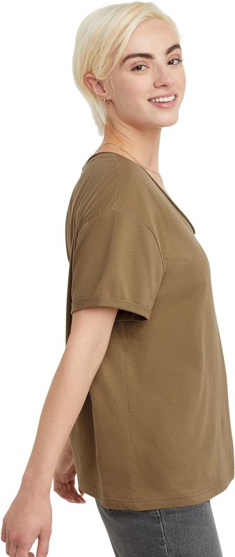 Hanes Women's Originals V-Neck Short Sleeve T-Shirt with Raw Edge, 100% Cotton Tee