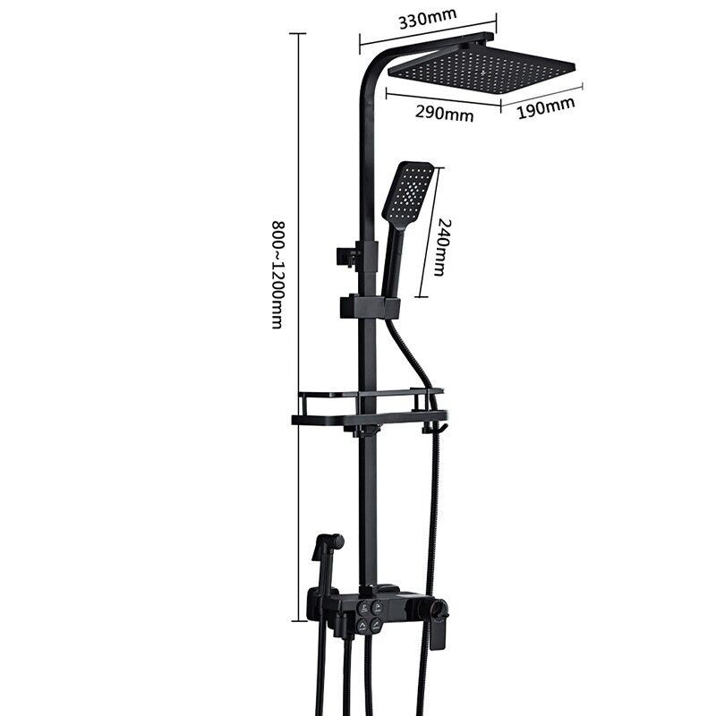Modern Thermostatic Exposed Bathroom Shower Twin Head Bar Set Mixer Square Valve