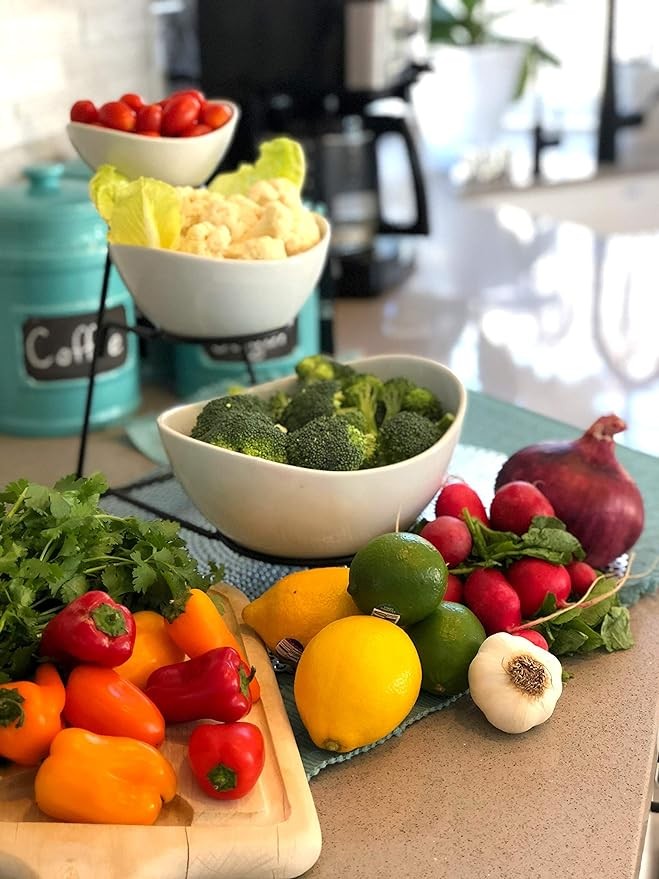 • ✅ STYLISH SERVICE FOR YOUR GUESTS: This eye-catching 3-Level Bowl Rack will surely showcase your culinary ideas on these beautiful bowls to make your event more lively and interesting. A stronger stent won't shake the forgotten uneven and sturdy service stent of those inexpensive 5mm legs. The metal frame has a diameter of 6.5mm, so it has higher stability.