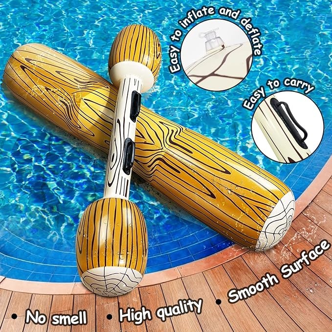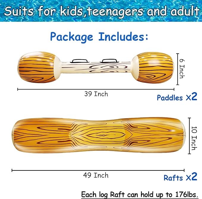 • 【Large Size,Pool Games for Adults and Kids】Sitting log inflated size is 49*10 inch (length x width). Walking sticks inflated size is 39*6 inch (length x width). Each log can bear up to 176 lbs. The pool float is suitable for most adults and kids, enjoy fun swimming pool games with your family or friend in summer.